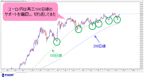 ■ユーロ/円は100日線を割らない限りブルトレンド継続か