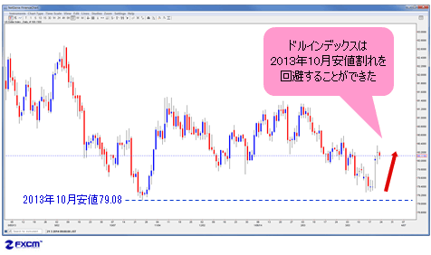 ドルインデックスは2013年10月安値割れを回避することができ、トレンド修正の兆しを点灯した。