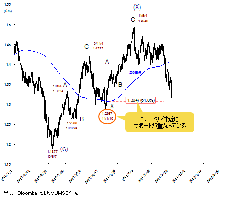 ■ユーロ/米ドルの1.3ドル付近にはサポートの重なりがある