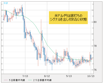 ドルインデックスは10月4日(火)につけた79.84の高値から76.80レベルまで反落しているが、8月末から急激に切り上げられてきだけに、調整は当然の成り行きと受け止めている。