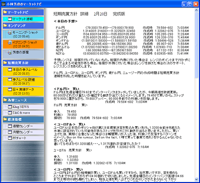 小林さんもマーケットの変化に応じて対応を変化させることがある。途中で注文をキャンセルしたり、早々と利食いすることもあるのだ。そして、そうした情報も会員専用画面で発信されている。