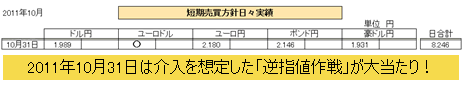 逆指値のケースは少ないが、ないわけではない。ここでは2011年10月31日(政府・日銀による介入が実施された日)のケースを紹介しよう。