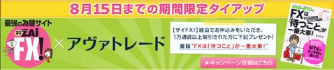 現在、ザイFX!では、アヴァトレード・ジャパン[メタトレーダー4]との限定タイアップキャンペーンを実施中です。