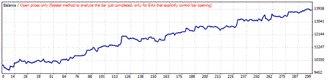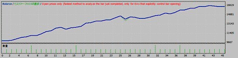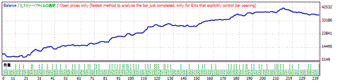 以下はしろふくろうさんが実際にメタトレーダー(MT4)上でEAを動かして、うまくいったときの資産曲線のグラフ。こんなふうに自動売買で着々と資産が増えてくれればうれしいところだ。