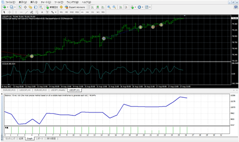 「最初に絶対やるのがバックテスト。メタトレーダー(MT4)なら『ストラテジーテスター』を使ってカンタンにバックテストできるから、いろんな通貨ペアや足でやってみて、どれが結果が良いのか確認する。