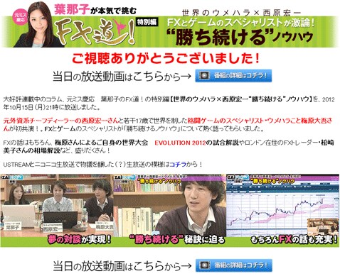 ●葉那子のFX道!の特別編【世界のウメハラ×西原宏一“勝ち続ける”ノウハウ】