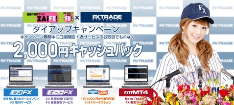 ザイFX!を経由して、FXトレード・フィナンシャルに新規口座開設し、[高速FX]、[オートFX]、[HIGH・LOW]、[FXTF MT4]いずれかのサービスで取引をすると現金2000円がもらえます。