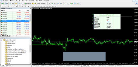 ちなみに、4つのインディケーターの下にある「Autochartist Web」をドラッグし、チャート上でドロップするとウェブ版のオートチャーティストが別画面で立ち上がります(あんまり使わない機能かもしれませんが…)。