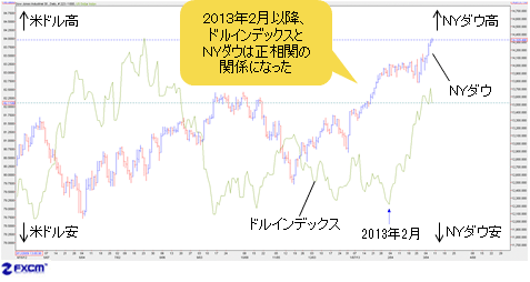 ■ドルインデックスとNYダウは逆相関から正相関に