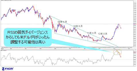 チャートに示しているように、2007年高値から2011年10月安値まで米ドル/円は大きく下げてきた。