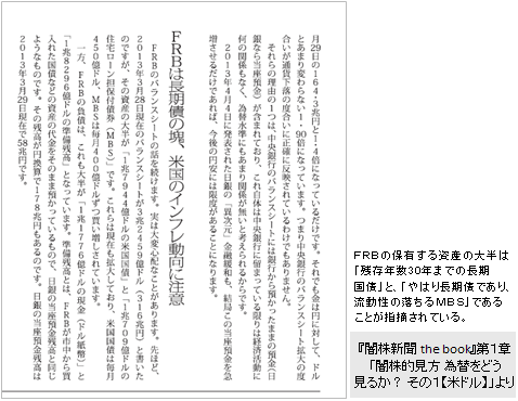 ザイFX!: 『闇株新聞 the book』の米ドルの章では、QE(量的緩和)を繰り返してきた「FRBは『巨大な長期債の塊』」であるという表現が出てきます(p37)。
