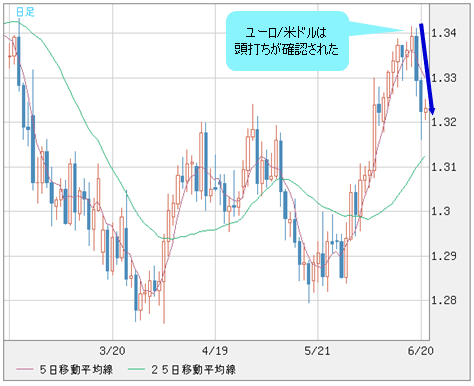 米ドル/円は97円台をキープしている。昨日(6月20日)、98円前半まで続伸したことから考えて、目先の反落は容認できる範囲だ。