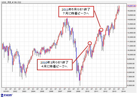 ■QE3縮小の1カ月後に株価はピークを迎えるだろう