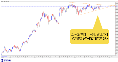 ユーロ/円のトライングルにしても、英ポンド/円のダブルトップにしても、上放れなしでは依然反落の可能性が大きいから、こういった局面においてやはり米ドル/円がガンガン高値を取っていく時期ではないと思う。