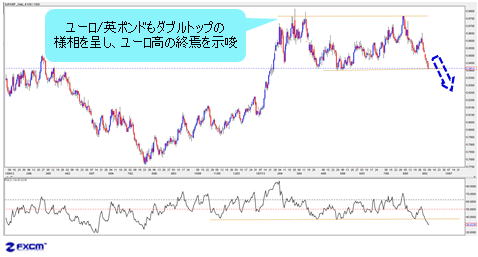 次はユーロ/英ポンドだが、こちらもダブルトップの様相を深め、ユーロ高の終焉を示唆している。
