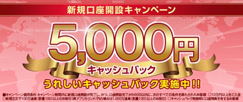 また、5000円がキャッシュバックされる新規口座開設キャンペーンも、同時に実施中です。
