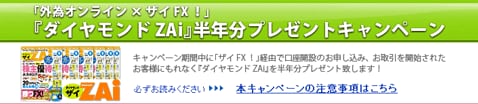 ザイFX!経由で外為オンラインに新規口座開設し、初回入金10万円以上を行ったうえで、1回以上取引をすれば、もれなく『ダイヤモンドZAi』が半年分(6冊、4200円相当)がもらえます!