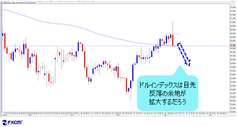 リンクするように、ドルインデックスは逆のパターンを示し、目先反落の余地が拡大するだろう。