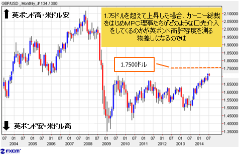 英ポンド/米ドルが1.75ドルを超えて上昇するような局面でカーニー総裁やMPC理事がどのような口先介入をするかがポイントになるという