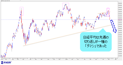 ■米ドル/円、日経平均も先週の「ダマシ」が効いてくるか