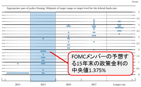 「FOMC後に発表される『ドットチャート』(※1)を見ると、FOMCメンバーが予想する2015年末の政策金利は中央値で1.375%。