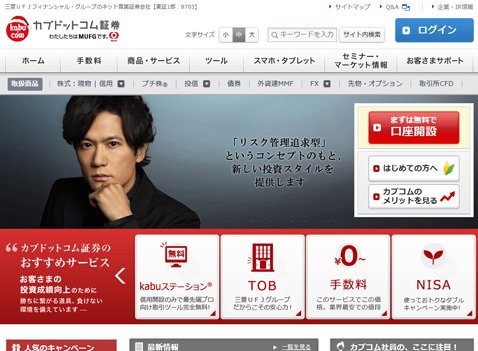 カブドットコム証券では、2014年12月現在も稲垣さんをイメージキャラクターに起用中。ウェブサイトでは、テレビCMの動画も公開されていますので、興味のある方はチェックしてみてください。