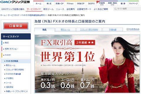 まずは、GMOクリック証券から! 2012年、2013年と2年連続でFX取引高世界第1位に輝き、2014年も上半期はすでに世界第1位と発表されている超人気FX会社GMOクリック証券。