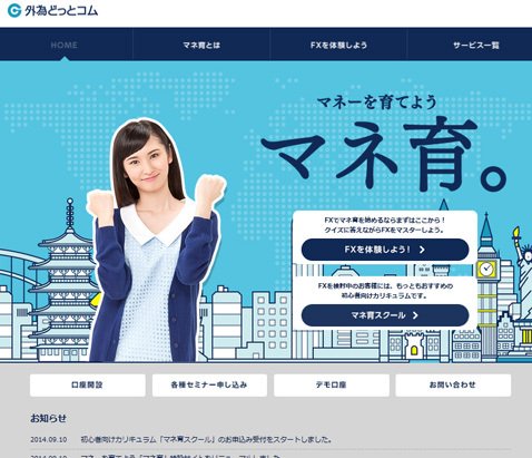 ここまで何度か紹介してきたとおり、2014年、スプレッド縮小やイベント開催など、かなり積極的な動きがあった外為どっとコム。外為どっとコムは、「マネ育」を前面に押し出したテレビCMを制作しましたが、このCMに出演しているのが実力派若手女優、大久保聡美さんです。