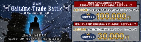 また、2013年から2014年にかけて大胆なスプレッド縮小を行った老舗FX会社、外為どっとコム「外貨ネクストネオ」も数カ月連続で「外為トレードバトル」を開催。2014年12月現在も、第5回の「外為トレードバトル」が開催されています。