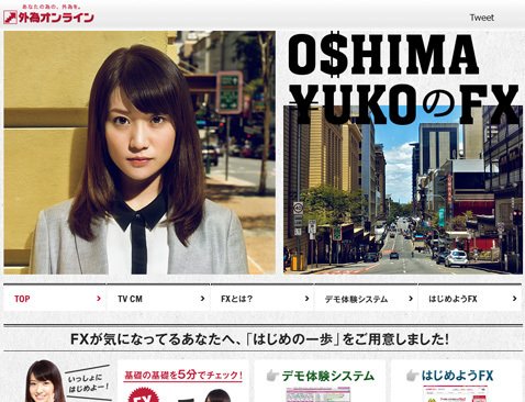 そんな外為オンラインですが、2012年からは、元AKB48の大島優子さんをイメージキャラクターに起用。テレビCMはもちろん、ウェブサイトにも大島優子さんの画像がたくさん使われていますよ。