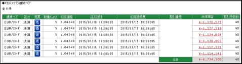 「DMM.com証券を使って、トラリピ(※)のような取引をユーロ/スイスフランでやっていました。スイスフランショック直前の1月12日(月)にもSNBが1.20フランの防衛ライン維持を明言したばかりでしたし、強制ロスカットとなっても93万円ほどの資金が残るだろうと計算していました」