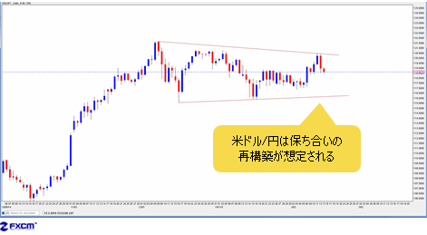 足元では、少なくとも以下のチャートのような、保ち合いの再構築が想定されるだろう。