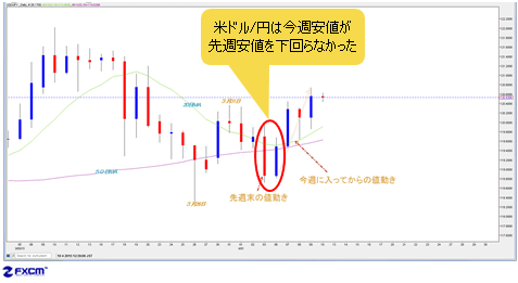 米ドル/円も然り。基本的にドルインデックスとリンクした値動きだが、より強かったところをあえて指摘するならば、それは今週月曜(4月6日)の安値が先週末(4月3日)安値を下回らなかったところだと思う。