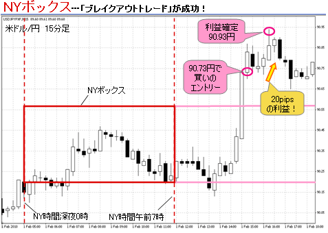 NYボックスというトレード手法の中には、実は2つの種類があるが、その1つが「ブレイクアウトトレード」だ。