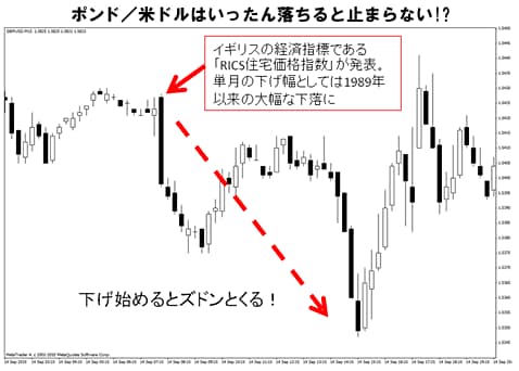 松崎 ポンドをやるんだったら英ポンド/円よりユーロ/英ポンドですね。あとは英ポンド/米ドル。ロンドン時間に「あ、落ちてきた」と思うと、結構大きく落ちるので、値動きあるときなら、いちばん儲けやすいのは英ポンド/米ドル。