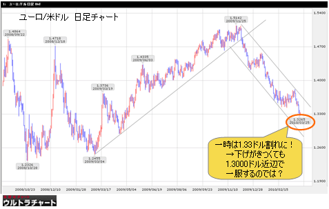 ところで、ギリシャ支援に関して、EU(欧州連合)内部の足並みの乱れや各国の思惑の相違とあつれきが表面化し、ユーロ/米ドルが1.33ドルを割り込む場面も見られた。