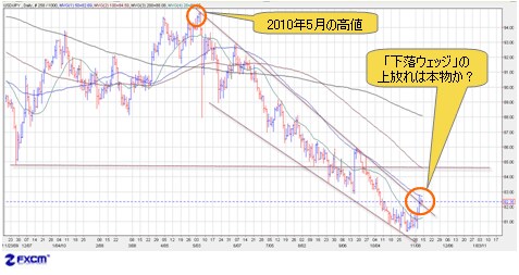 焦点は、今年の5月高値から形成された「下落ウェッジ」の上放れが本物かどうかである。