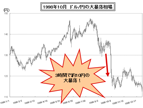 「私が経験した相場で、短時間に一番大きく動いたのは1998年10月のドル/円相場ですね。この時はニューヨーク市場の3時間ほどでドル/円が10円下がったんですよ」