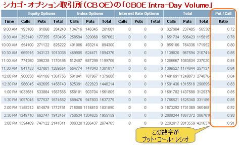 なお、プット・コール・レシオはシカゴ・オプション取引所(CBOE)の「CBOE Intra-Day Volume」で見ることができる。