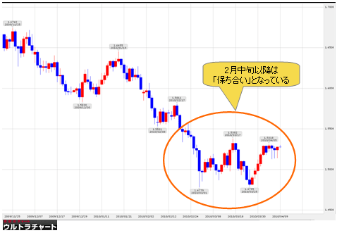 また、ユーロ売りの動機は言うまでもなく、ギリシャ問題に端を発するユーロ圏のソブリンリスク(国家の信用リスク)にあり、英ポンドは、量的緩和継続と政局の混迷が売り要因で、その背景には財政赤字膨張に伴うソブリンリスクもあるだろう。