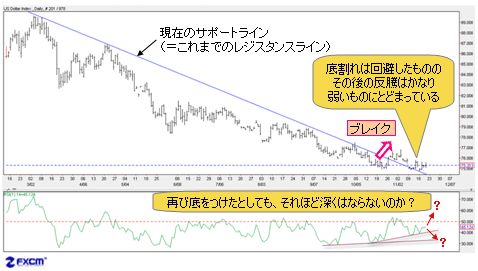 ドルインデックスは底割れを回避したものの、その後の反騰が、かなり弱いものにとどまっていることも事実だ。