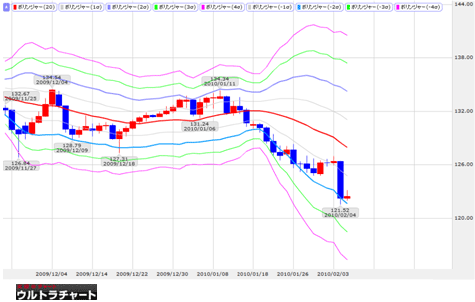 これには、ボリンジャーバンドを8本表示できる「ウルトラチャート」がとても有効だ。