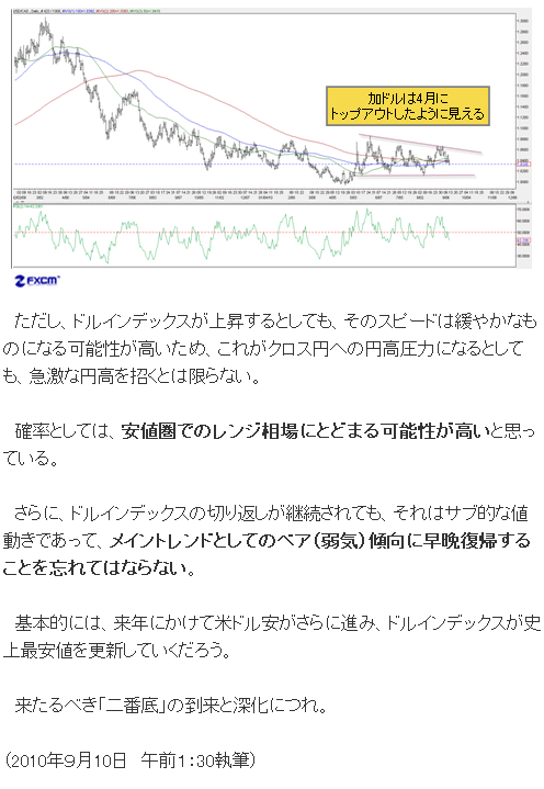 ところで先週のコラムにおいて、円高圧力は、米ドル/円主導よりもクロス円(米ドル以外の通貨と円との通貨ペア)主導になりやすいと指摘した。その根拠は、やはりドルインデックスにある(「ECBの声明は間違い!『二番底なし』と断言する慢心が次の危機を引き起こす!!」を参照)。