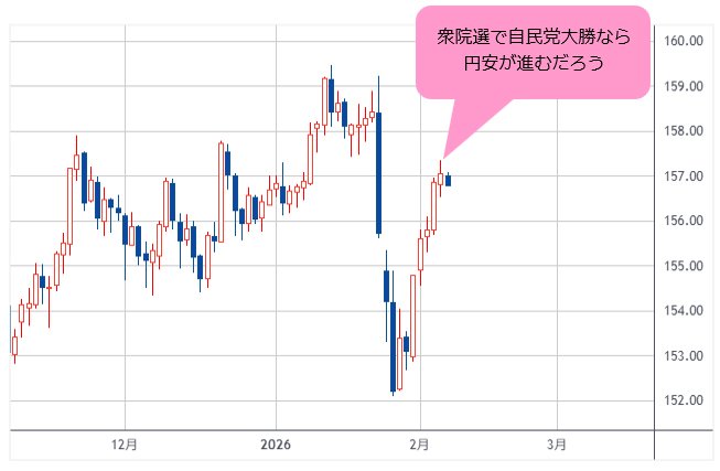 まず国内では、衆議院選挙は、選挙戦も後半に入り、今週末(2月8日)に投票日を迎えます。後半の情勢調査を見ると、自民党が大勝するのは確実になってきています。